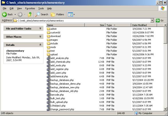 Your chemoventory package should have more than 80 files, most of them are php files and few sql scripts to install database and few other files. Chemoventory package do not have any of the above programs (php, mysql, zend optimizer etc) or documentations.