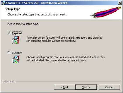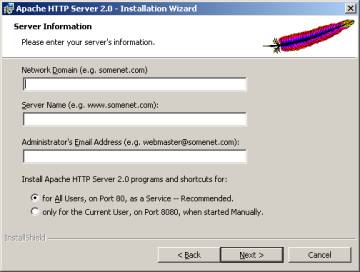 In windows use default installation and settings and install apache. Remember to add appropriate server name and domain name